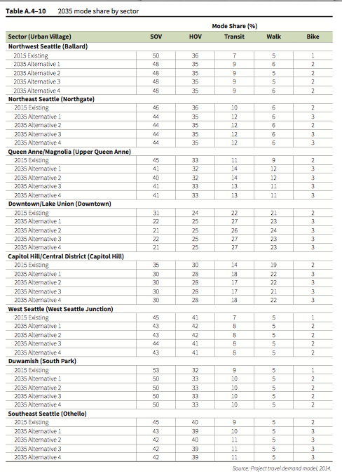 NW Seattle Mode split expectations Seattle 2035