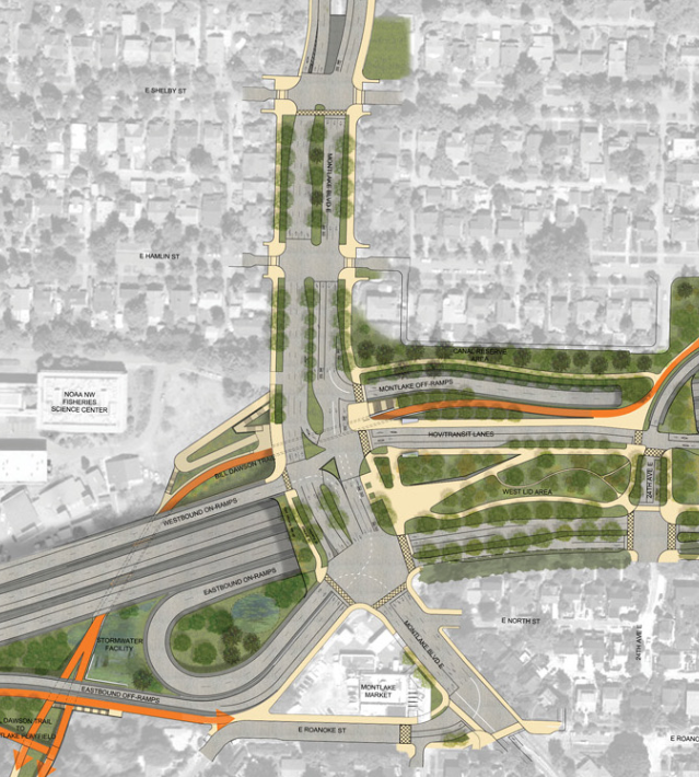 The 520 Montlake Interchange will be a formidable obstacle. Image courtesy of WSDOT.
