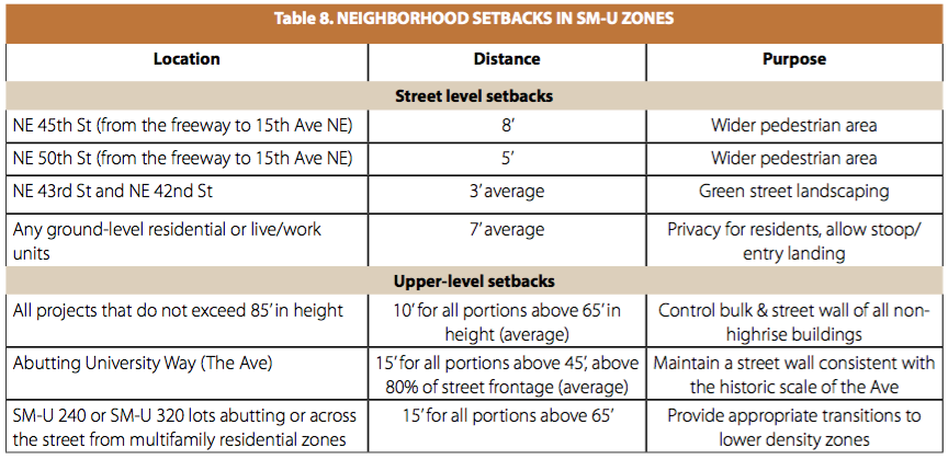 U District – Street Level Setbacks