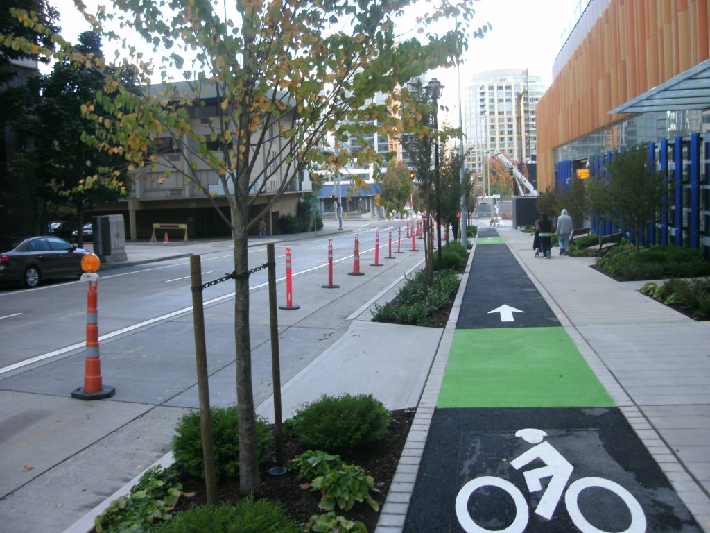 A bike lane on Blanchard Street built as part of Amazon’s campus. Unlike the lanes on 7th, there are no plans to extend the lanes on Blanchard right now (photo by the author) There are a few other gaps getting filled downtown this year: Roy Street between Dexter and 9th Ave N, as well as a block of Dexter between Mercer and Roy that lacks protection now. SDOT will also start construction on 9th Avenue N but not be able to complete the entire project until 2018 due to construction on the south end of the block.