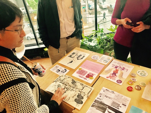Local queer, Latinx artist Myra Lara held a very well attended art opening at Hybrid_Space last week. Not Even Barely Legal: (Desperately) Creative Infill Development included a mix of architectural sketches, comics, and is grounded in activism. Myra Lara is a thoughtful, talented artist who is foucsed on education and advocacy for spatial justice.