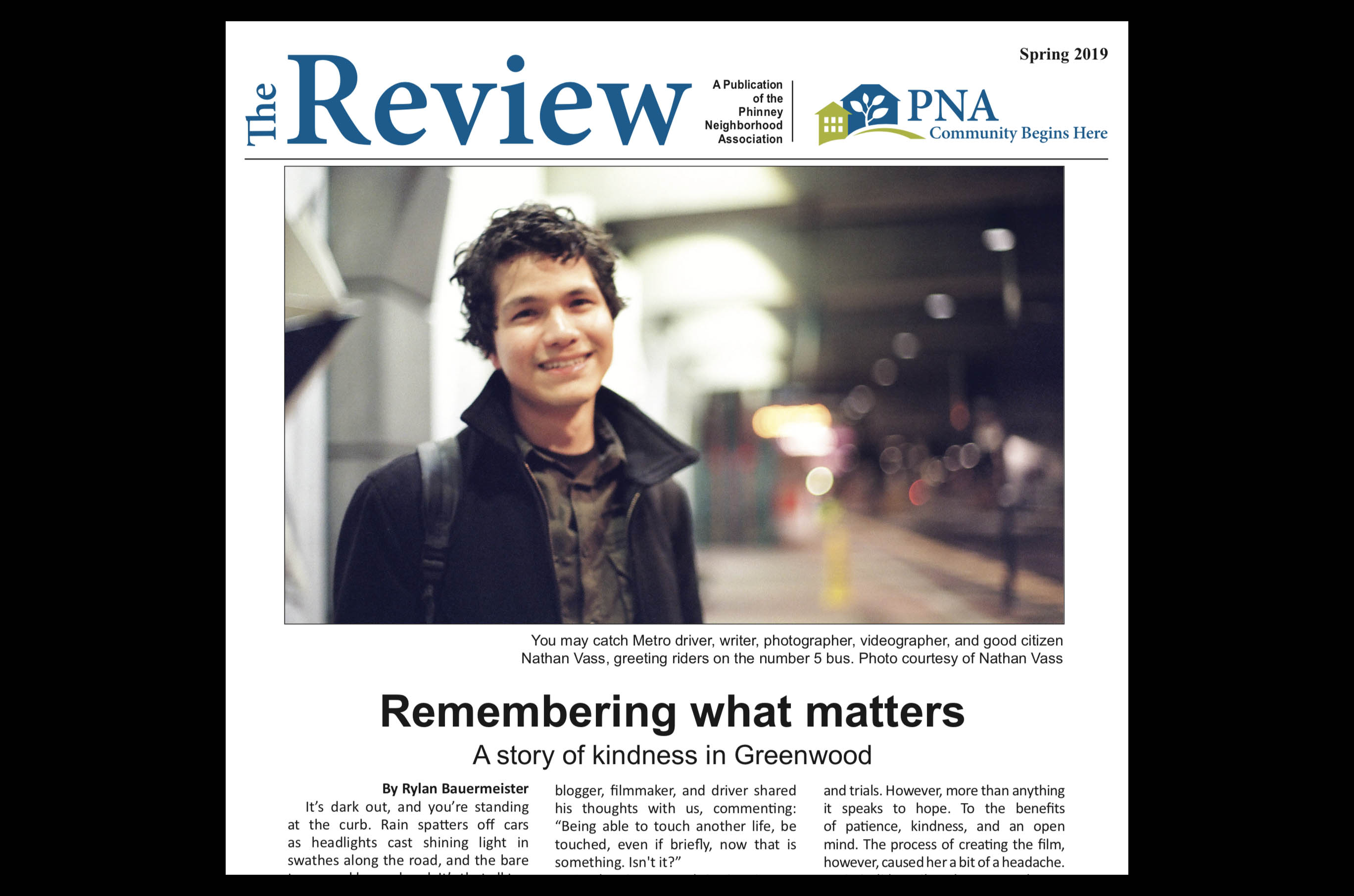 Nathan Vass is an artist, filmmaker, photographer, and author by day, and a Metro bus driver by night, where his community-building work has been showcased on TED, NPR, The Seattle Times, KING 5 and landed him a spot on Seattle Magazine’s 2018 list of the 35 Most Influential People in Seattle. He has shown in over forty photography shows is also the director of nine films, six of which have shown at festivals, and one of which premiered at Henry Art Gallery. His book, The Lines That Make Us, is a Seattle bestseller and 2019 WA State Book Awards finalist.