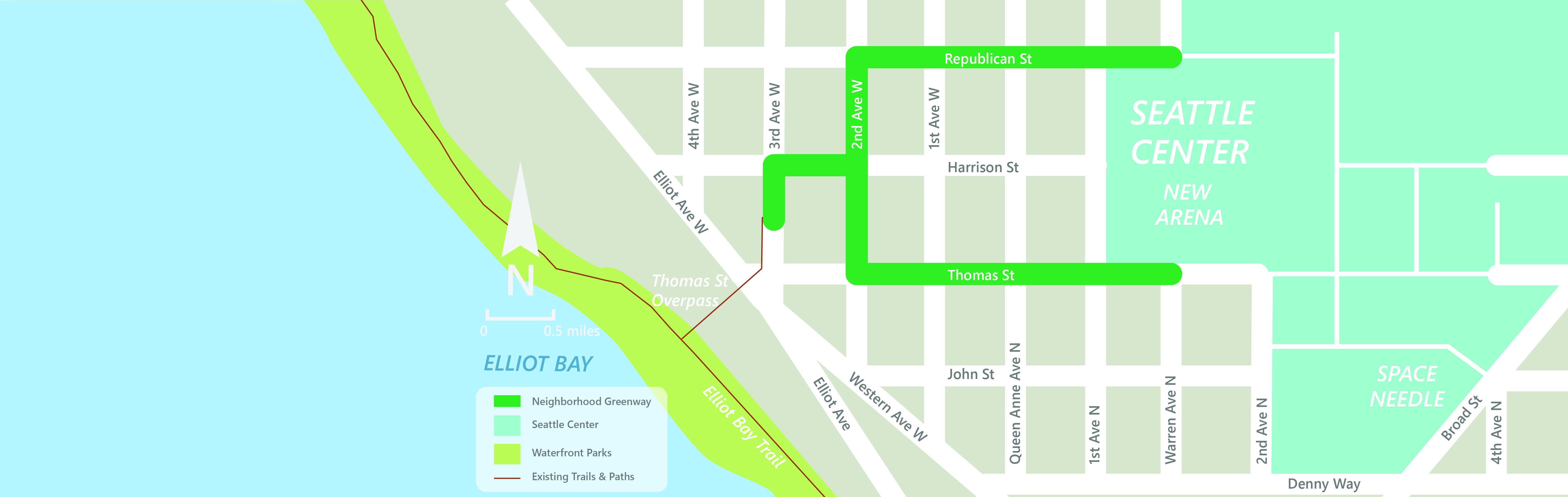 Seattle Center to Waterfront Greenway Location Map