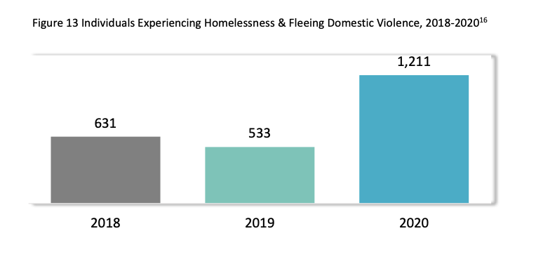 However, while economic factors like cost of living and job loss were cited mostly commonly as reasons for why people fell into homelessness, the amount of people who self-reported as fleeing domestic violence surged by 127% in 2020.