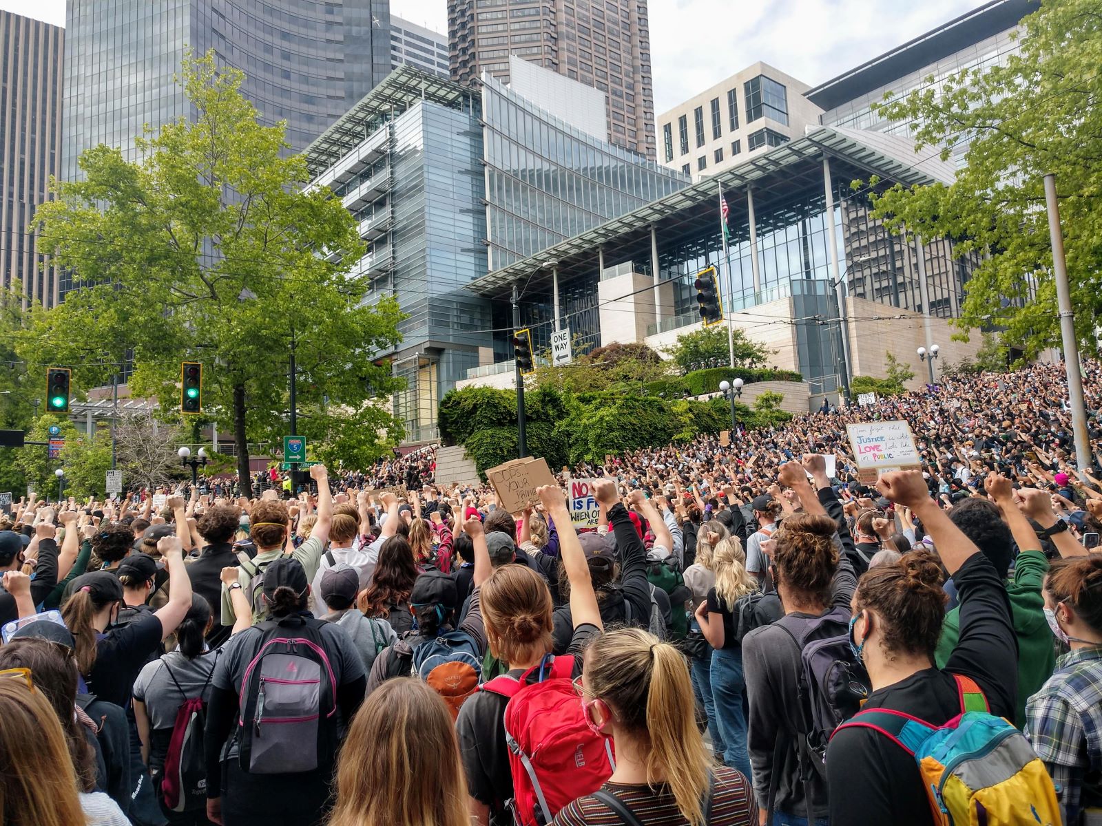 Fist Raised Protesters City Hall