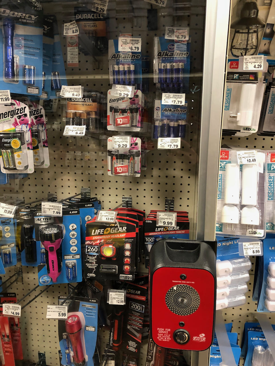 Shelf after shelf of Pringles cans in all the colors of the rainbow.