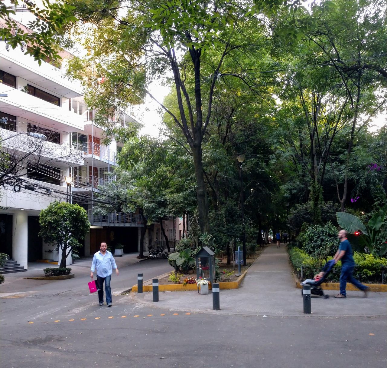pedestrians-in-Hipodromo-CDMX-center-greenway-path