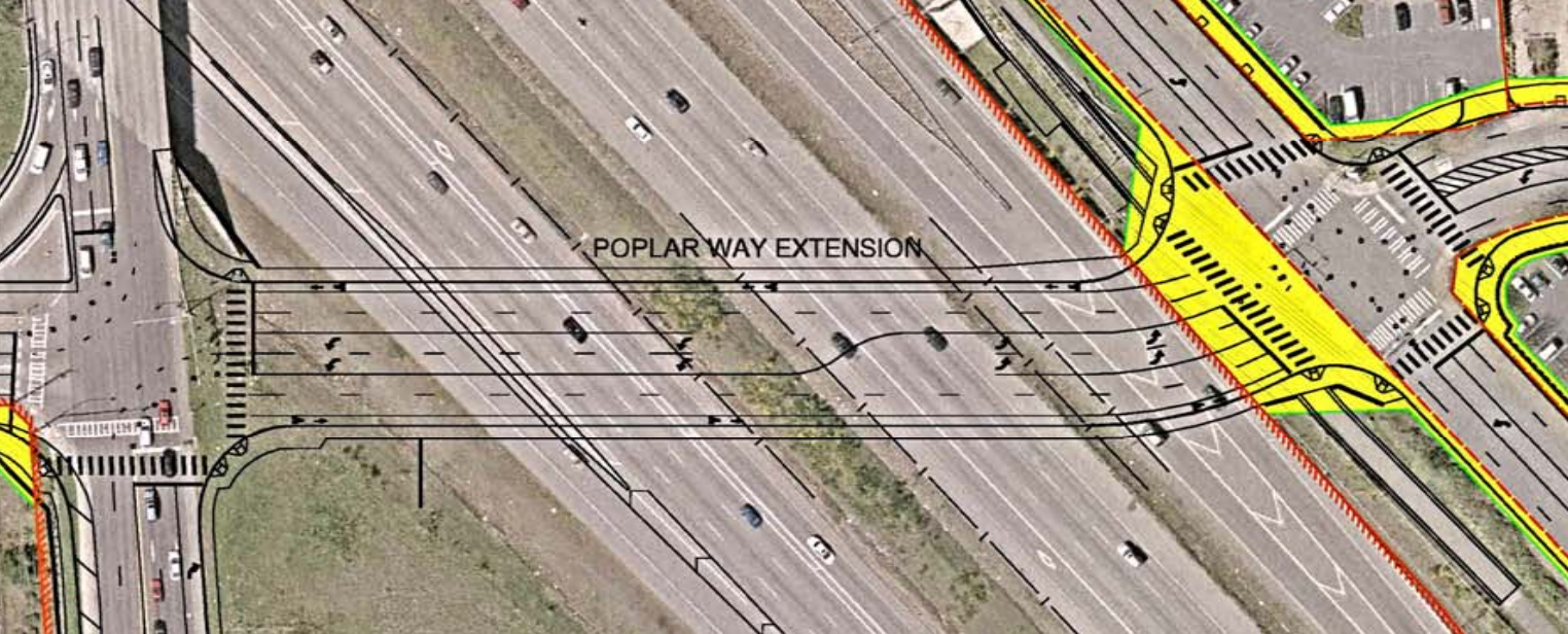 A rendering of future Poplar Way bridge over I-5 with no traffic visible on it