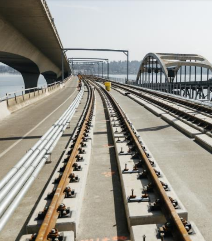 Light rail tracks on East Link floating bridge