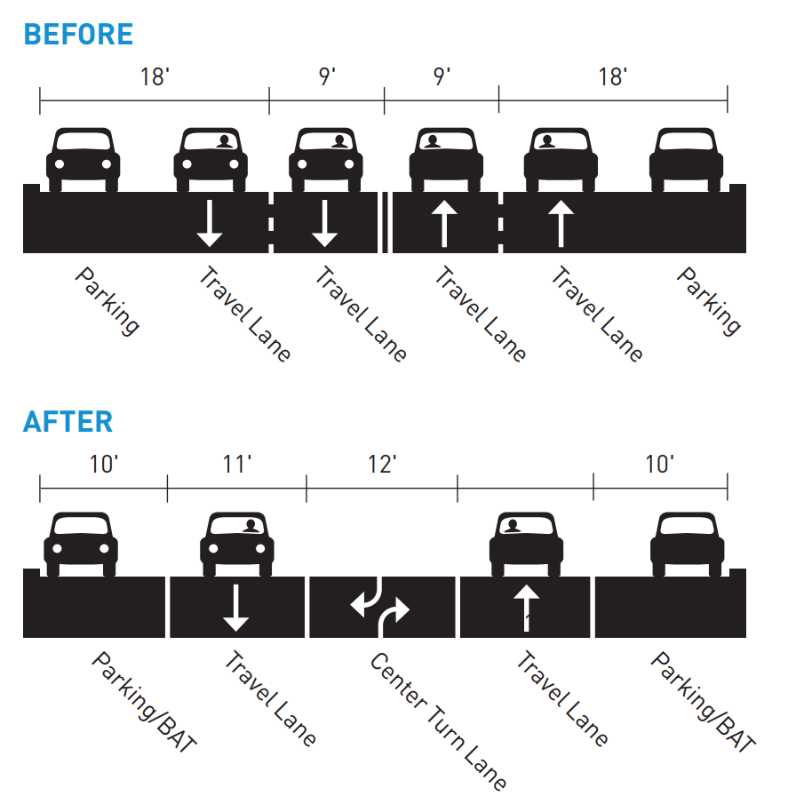 The change, which converted the two lanes in each direction to one, with the addition of a center turn lane, is one that the city has made on several high-collision corridors in recent years, including Nickerson Street in Queen Anne, and NE 75th St and NE 125th St in North Seattle. Rainier Avenue (#2 in fatalities during the same period I referenced) is currently having the same treatment phased in along much of its length, and serious injuries have precipitously declined there where it’s been done.