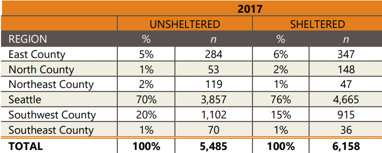 One takeaway from the All Home report, is that though Seattle continues to have the largest population of homeless folks both unsheltered and sheltered, the problem has reached all corners of the county, as other counts have shown.
