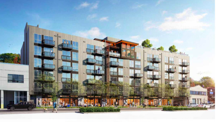4906 25th Avenue NE: Two six-story courtyard apartment buildings with 278 homes, ground floor retail, and parking for 259 vehicles.