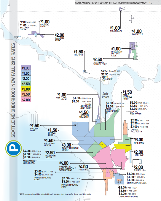 - South Lake Union 2hr: Rates remain at $2.00 in the morning per hour, but afternoon and evening rates increase to $2.50 per hour.