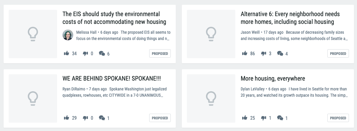 At this point, if you visit the One Seattle Plan Engagement Hub about 500 participants have provided 362 comments on the current scoping phase. In a growing city of over 762,000 residents, that number represents a tiny drop in an ocean of Seattleites. This means that what you write is likely to be read — and taken into consideration — by key policymakers. The old adage that the squeaky wheel gets the grease will apply in this case, as it has so many times in the past.