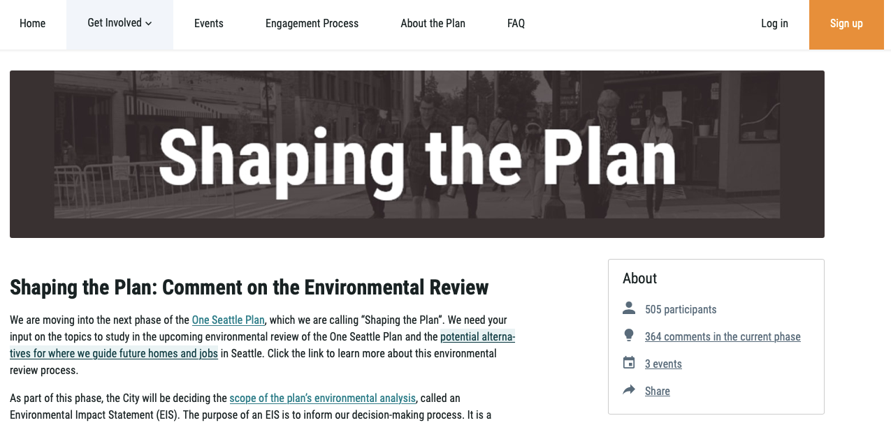 Don’t despair if this whole Major Comprehensive Plan Update sounds foreign and strange to you — the City of Seattle has put in extra effort to helping the public understand plan and engage with the process. If you find overviews helpful, a good place to start is a six minute video created by OPCD that explains what a Comprehensive Plan is, why it matters, and how you can get involved.
