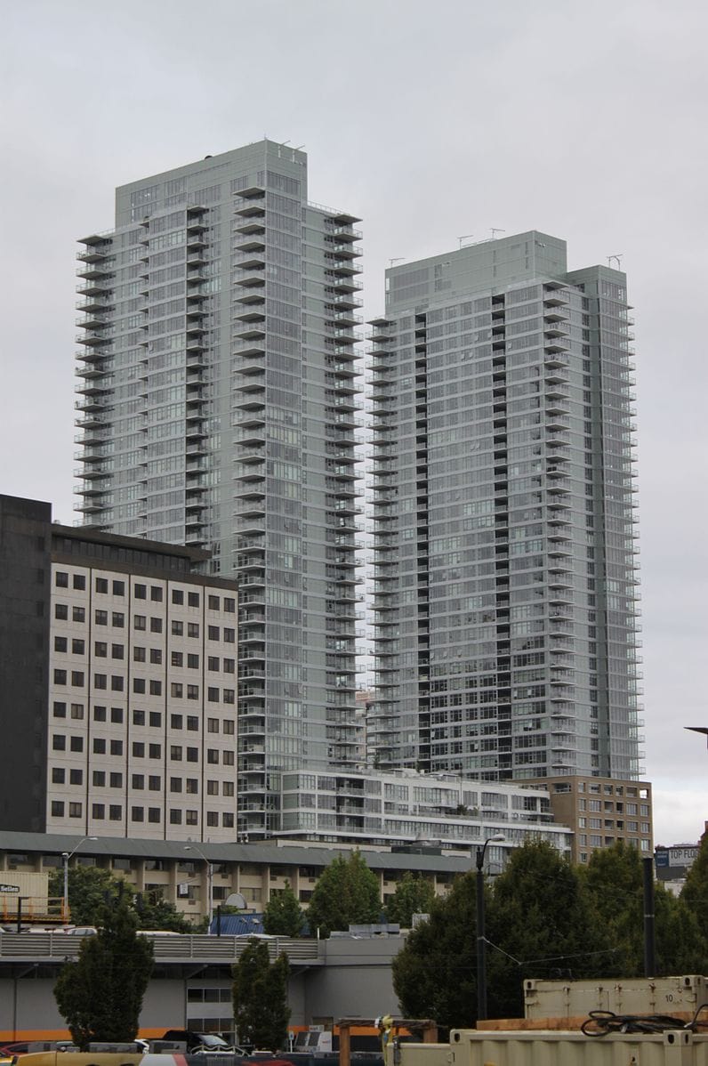 Completed in 2015, Insignia was one of the first major projects of this cycle and still one of the only condominium projects. It has 618 units split between two seemingly identical 41-story towers. It is in many ways the perfect embodiment of the extrusion building, with floors repeating. While not particularly exciting, it has an order and rhythm that makes it rather pleasing. It also has the benefit of being alone and thus very visible in its corner of the skyline, though it may soon be joined by others. It greatest claim to fame may be that it seem to be the first of Seattle’s many twin. I can count four sets under construction and three more about two start including two more sets on the adjacent block.