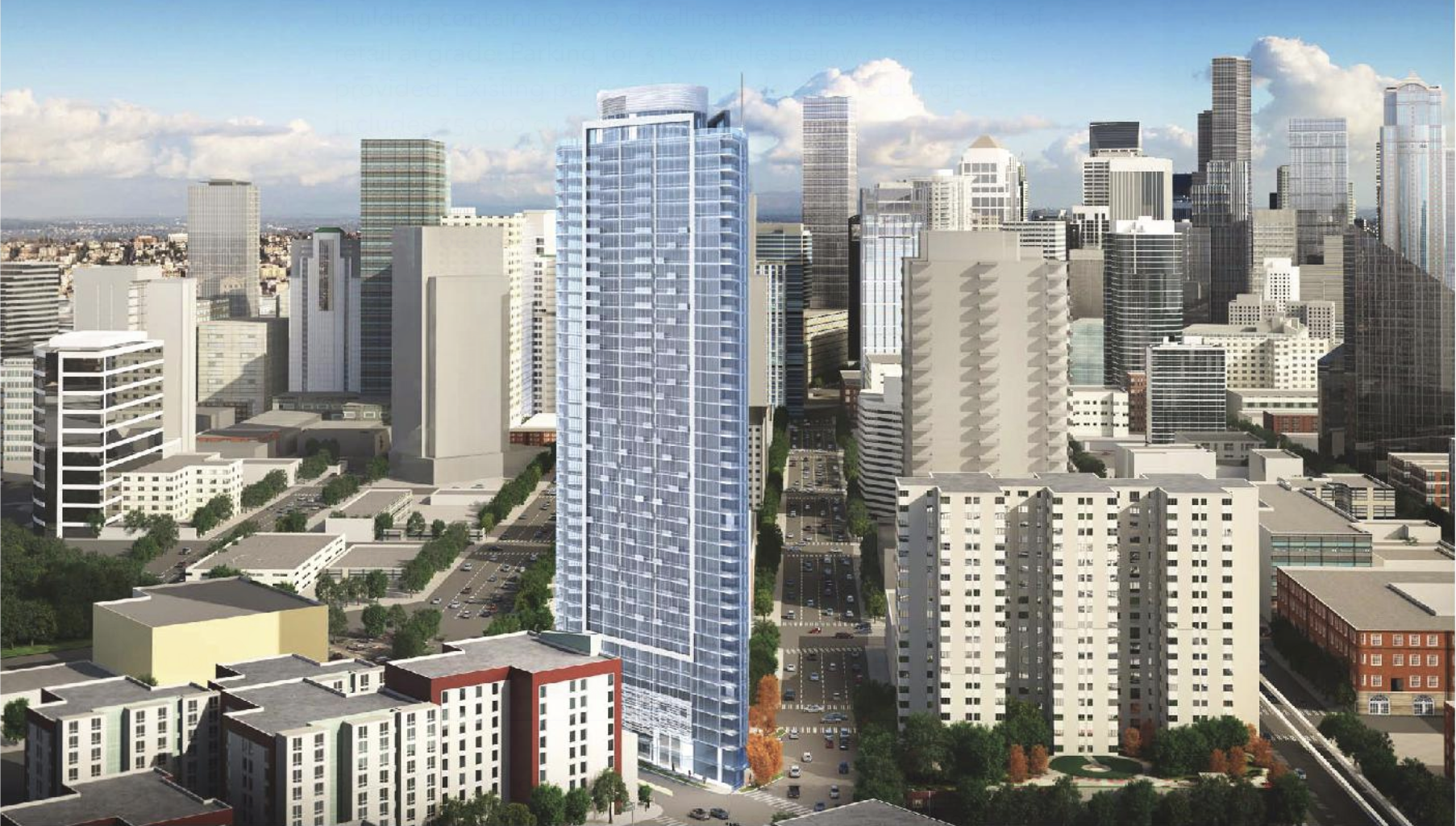 I’m grouping these two projects together, not just because they are a block apart, or because they are both project by Canadian developers, but because they represent a shift in style from what Seattle has seen in the past. Their curvy, undulating facades have a fluidity not common in our city of boxes. They are reminiscent of Aqua, Jean Gangs acclaimed Chicago highrise know for is wavy facade. Since these two projects, others have followed with proposal for building that look shaped by the wind or water. This collection of building also herald a new Denny Way. Along with the project below and several more under construction or proposed, these new buildings will transform Denny Way from the auto-oriented street known for its car wash of just a few years ago to an urban canyon home to thousands of residents.