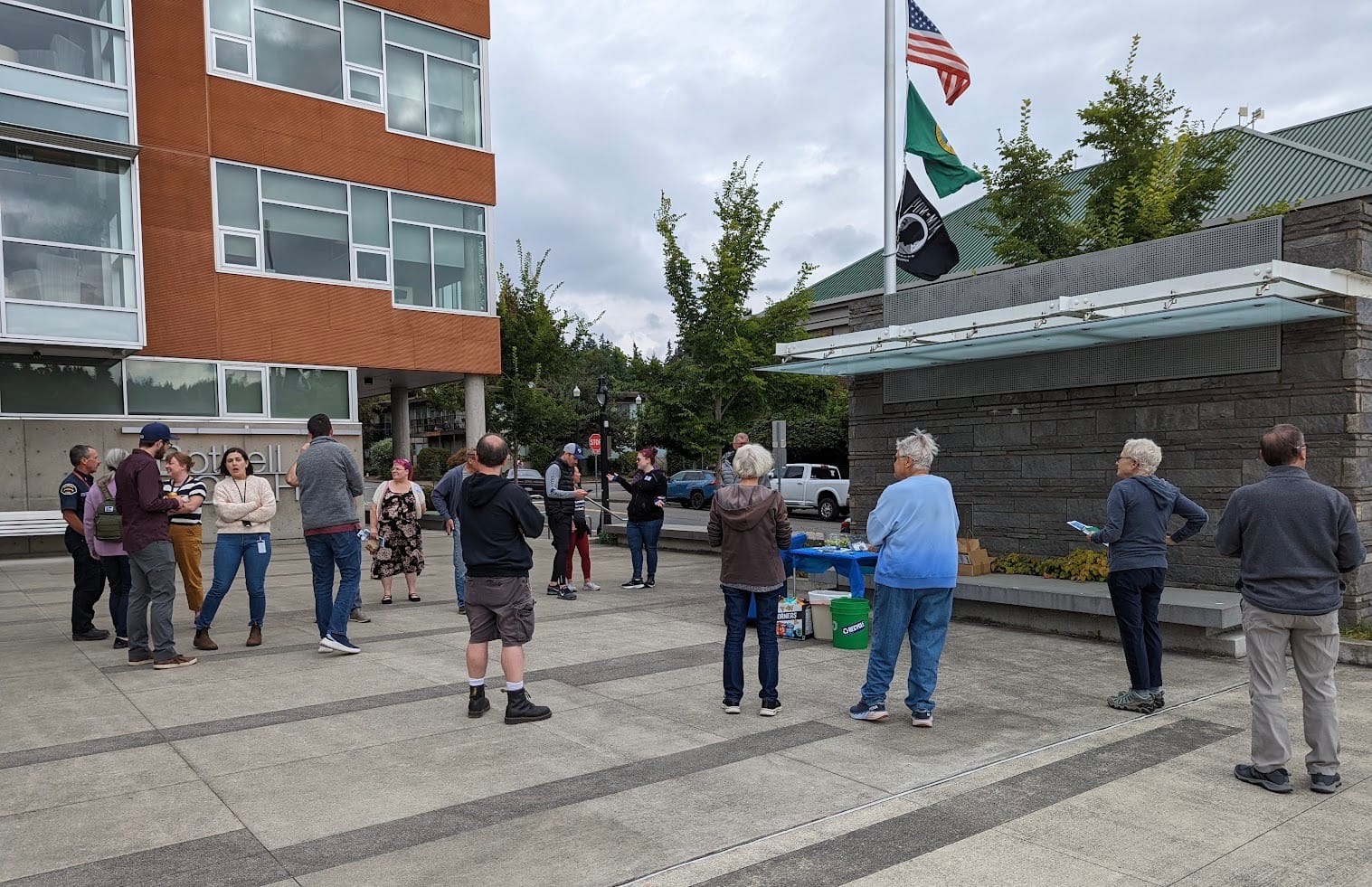 The tour started at 12:30pm at Bothell City Hall where a group of about 20 or so folks gathered for the walk. Our Bo-POP tour guides, Carston Curd and Cary Westerbeck, provided some background on Bo-POP and the Lower Maywood Hill neighborhood. And most thoughtfully, Bo-POP welcomed us with snacks, which I was grateful for since it was lunchtime. I snagged a delicious chocolate chip cookie.