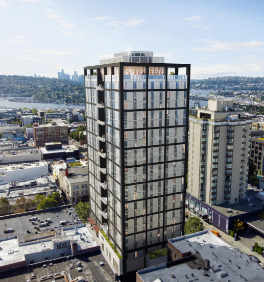 The development is only possible because of the 2017 Mandatory Housing Affordability (MHA) rezoning process that reintroduced the ability to construct towers in the U District. This updated zoning allows highrises between NE 50th St and the Burke-Gilman Trail, within a narrow column of blocks that also extends to I-5 with NE 45th St. The following 2017 update extended highrise zoning into University of Washington’s West Campus, all the way down to Portage Bay.