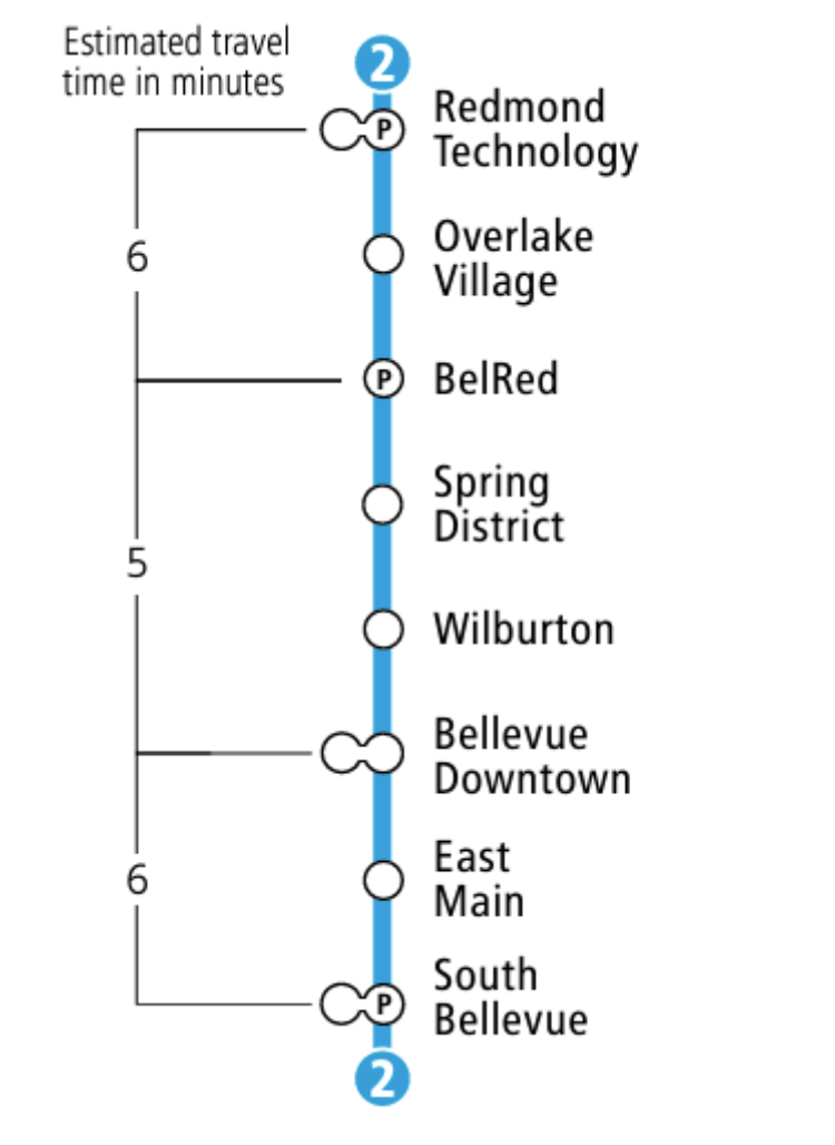 Sound Transit’s existing network of express buses will operate throughout the existence of the abbreviated 2 Line, so riders can catch a Route 550 bus to Downtown Bellevue or a Route 545 bus to Redmond once trains start running. It won’t be until full 2 Line service across Lake Washington that Sound Transit and King County Metro completely reorient bus service on the Eastside to take full advantage of light rail service.