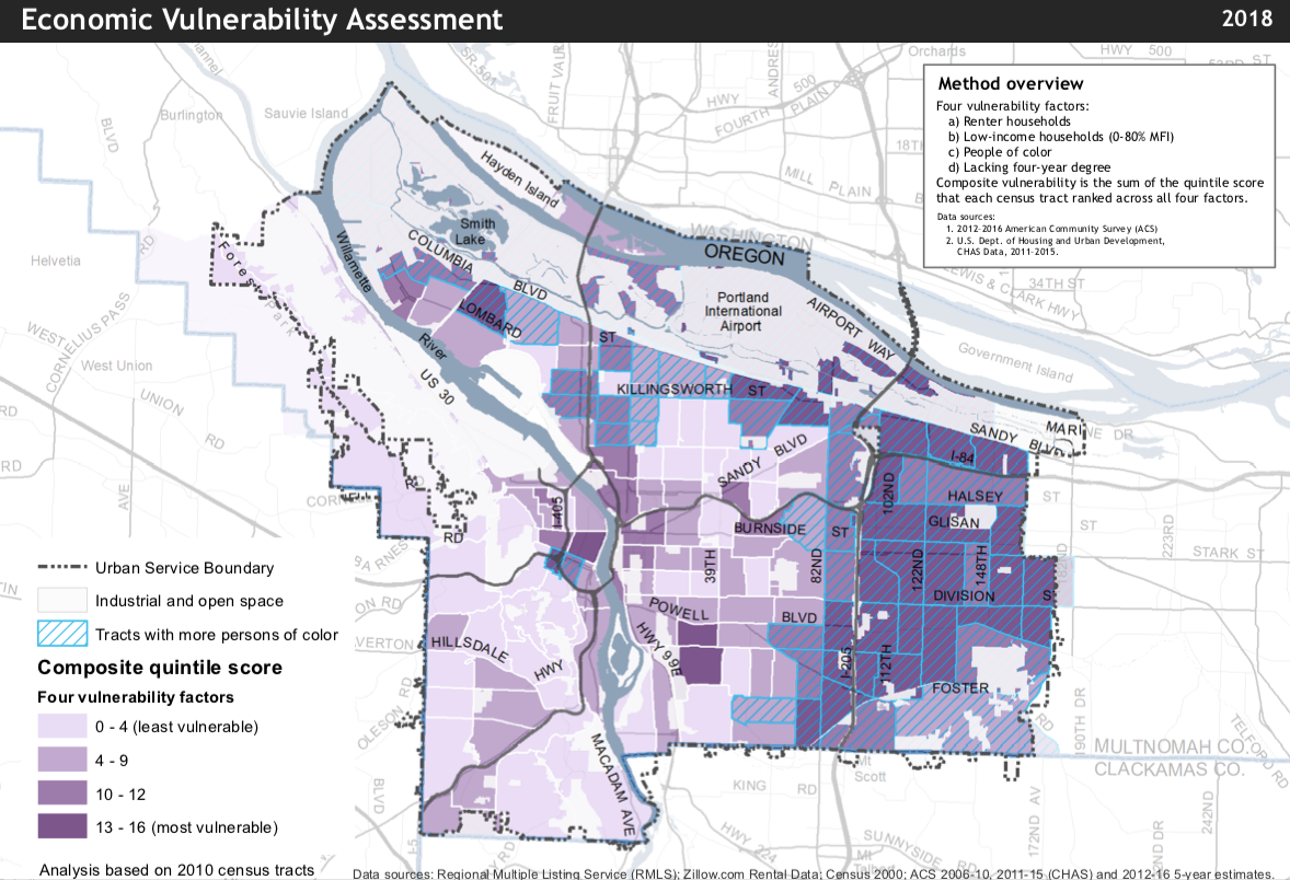 Portland currently has two major initiatives aimed at increasing density across the city: The Residential Infill Project, which focuses on adding density to current single-family zones, and Better Housing By Design, which revises development and design standards multi-family zones outside of the City Center. Both initiatives focus on increasing housing options for households of all ages, incomes and sizes, although according to presenter Sandra Wood, Principal Planner in the Bureau of Planning and Sustainability at the City of Portland, displacement of low-income and minority residents continues to be a concern. While both the Residential Infill Project and Better Housing By Design are expected to decrease displacement in comparison to no action alternatives, the City is currently reviewing additional anti-displacement strategies to implement alongside both initiatives.