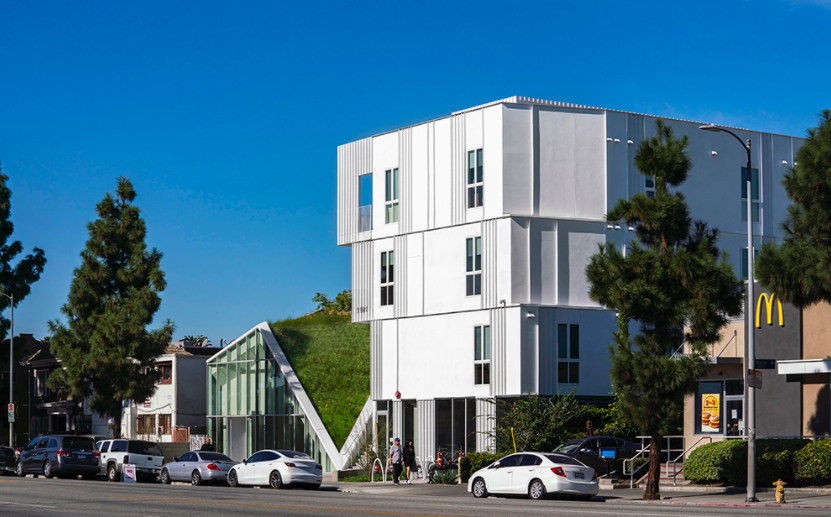 O’Herlihy shared examples of projects his firm has completed in LA, Detroit, and Raleigh, NC, that exemplify how this approach to architecture takes into account the larger framework within the building exists. MLK 1101, a permanently supportive housing development built next to a McDonalds in one of LA’s poorest zip codes was presented as an example of how can amplified urbanism can be applied to projects that occur on a budget.