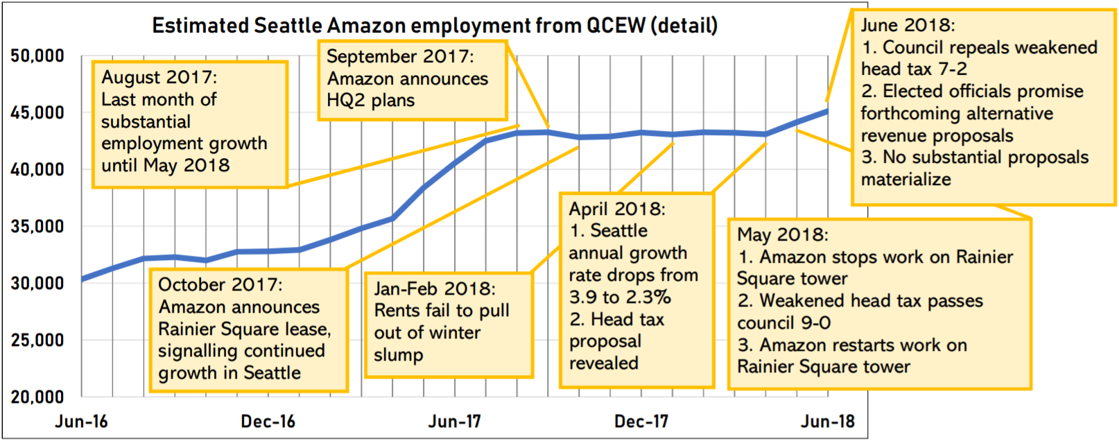 Amazon’s Seattle employment plateau, beginning in late summer 2017, can fill in some major gaps in recent Seattle history: