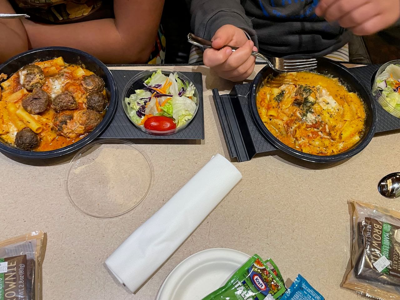 Dining on the Lake Shore Limited is a little different too, with no full dining car on these trains. They still serve hot food, but it is closer to pre-portioned airplane meals. Vegetarian options were hit and miss, so we ordered the pasta, and the meatballs got traded for more noodles between meat and non-meat eating family members.