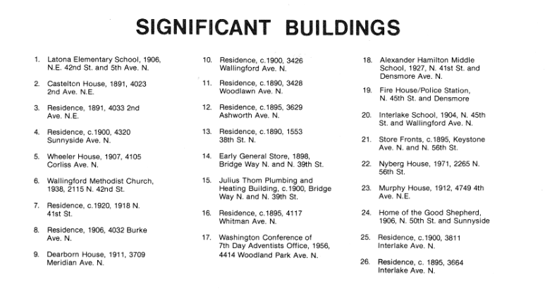 It should also be noted that these sections of Wallingford have already been studied for historic significance. In 1976, Seattle Architects Victor Steinbrueck and Folke Nyberg completed a study of the proposed historic district, and found just 15 homes out of the thousand or so residing in the area at the time, labeling them as, “Significant to the city—warrant further evaluation for designation as historic landmark.” It didn’t even necessarily state these were worth landmarking—just studying that they may be.