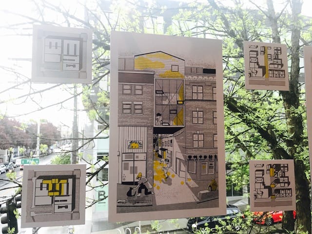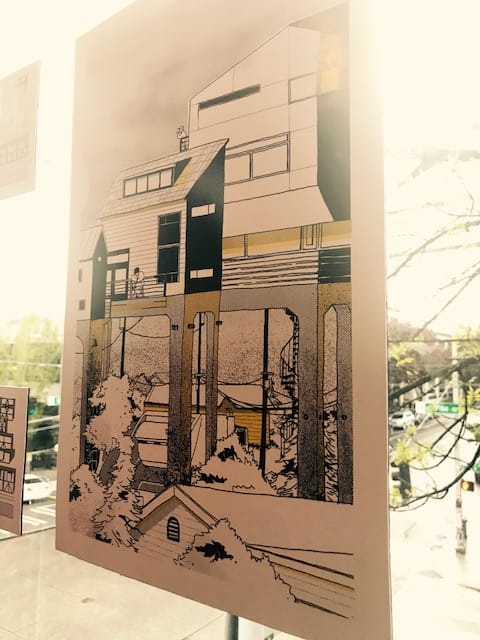 Lara told The Urbanist that she is working to “reframe the conversation” about what it means to share the city. She wants to “make it accessible through making it visually interesting. Alex Brennan, a Capitol Hill renter, quipped, “This exhibit says everything I want to say about Seattle, but better!” Another attendee said, “I’d never thought about this before. It made me think about (the housing crisis) differently.”