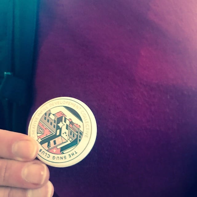 The art exhibit was a fantastic intersection of accessible entry points for people to think about zoning, maybe for the first time. It also included some urbanist inside jokes that would satisfy any policy wonk. For example, she designed an exclusive “snug club” wearable patch. I found this to be a fun tongue and cheek allegory to counter to existing neighborhood groups, themselves often exclusive groups that perpetuate exclusionary zoning of big lot detached single-family homes. Instead of watching a dry presentation about converting parking to housing, Lara demonstrated the possibilities through using the color yellow to highlight current use versus future use of limited land in our cities.