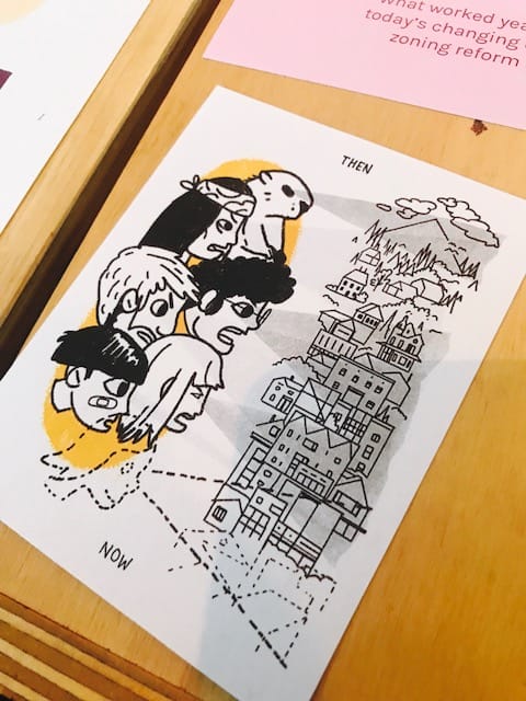 Housing policy is full of difficult jargon, counterintuitive relationships, and if you finally become confident enough to advocate for changes, city government is quite intimidating to access. Lara’s art exhibit is an example of how people’s imaginations can be engaged to spur action.