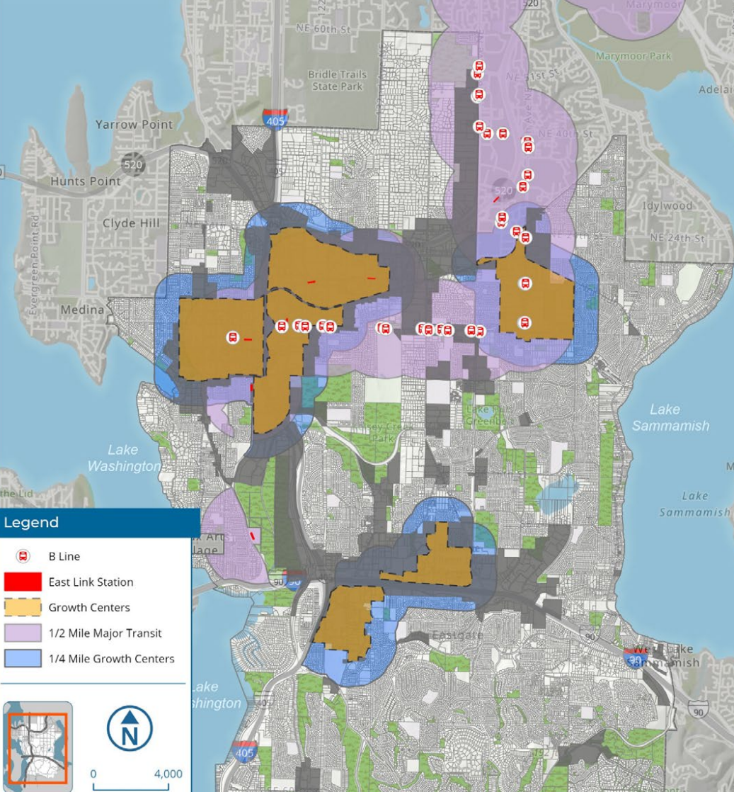 Like most cities across the region, Bellevue faces a June 30 deadline to update its zoning code to allow property owners to build four units on every residential lot, and six units close to light rail and bus rapid transit. The changes are prompted by House Bill 1110, a law approved in 2023 with the intention of increasing housing diversity across Washington’s cities. Cities can exceed the state’s minimum standard, if they so choose, and Bellevue is flirting with doing so.