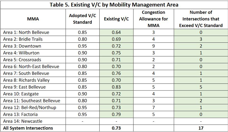 All of the body’s discussions revolve around the principle of concurrency. Because of the Growth Management Act (every policy wonk’s favorite piece of state legislation), cities like Bellevue are required to ensure their transportation systems have enough capacity to accommodate planned growth. When a city’s transportation system has enough capacity to accommodate expected demand, it’s said to be meeting concurrency.