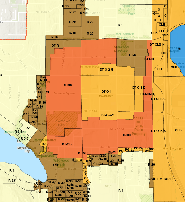 I have yet to mention the primary contributor to Bellevue’s parking problem, office towers. To explain this phenomenon, it’s best to look at the parking regulations in Downtown Bellevue. For parking, the downtown zones are split into two categories, the central office/O zones and everything else, which includes additional office, mixed-used, and residential zones. The most central office zones do have slightly lower parking ratio requirements than other office zones, and residential development included in these zones is also more modest, but in general the parking ratios are high in Downtown Bellevue.