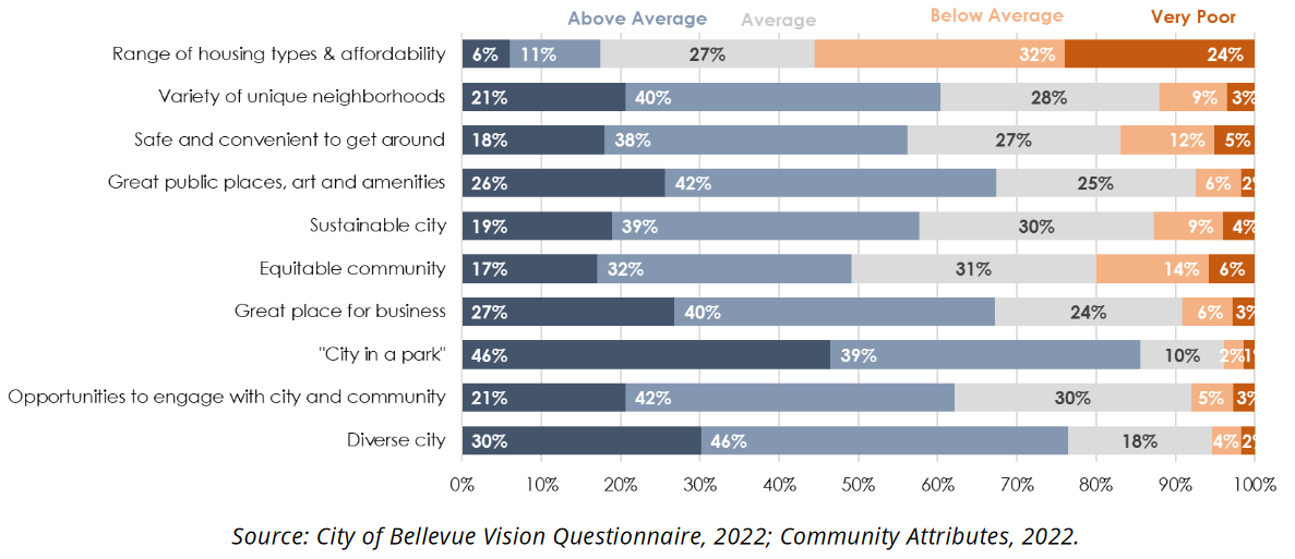 These rezones do present the opportunity for dense multifamily development, but they will do little to support missing middle housing typologies like duplexes, triplexes, and backyard cottages. The mayor’s comments come a day after Bellevue released results from Phase 1 of its Comprehensive Plan outreach showing that a majority of residents believe the city is doing a poor job of providing a range of housing types that are affordable.