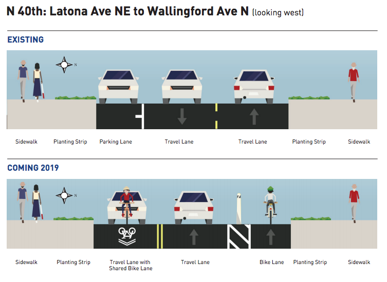 But even this basic bike facility, on one side only to preserve a lane of parking, has now been removed from the plans for repaving on N 40th St, with a statement on the SDOT page for the project reading: