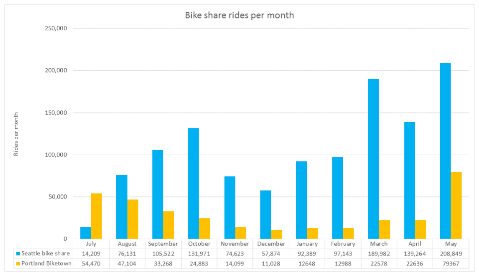 This article has been updated to add information about Biketown’s ride free promotion in May. We also added June figures to the second graph.
