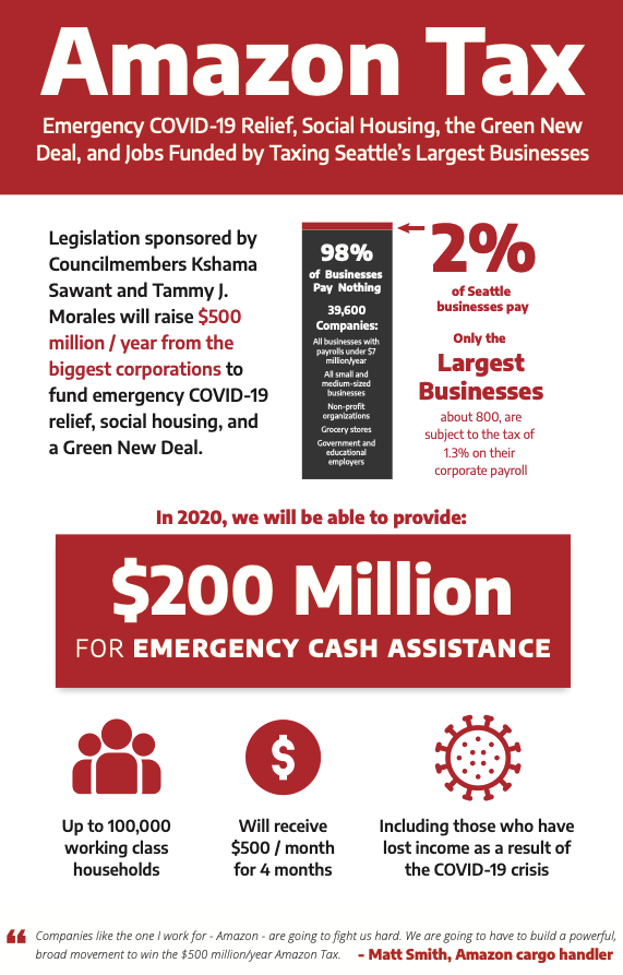 Funding for the initiatives would come from the $500 million payroll tax proposed by Councilmembers Kshama Sawant and Tammy Morales, best known as the Amazon Tax.