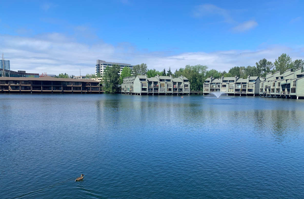 Lake Bellevue, located on the opposite side of 120th Avenue NE, is entirely surrounded by private development with only a few access points for pedestrians. Apart from offering the Crab Pot and I Love Sushi restaurant for seafood lovers, there’s not much for visitors to experience there. Although hard to imagine today, the lake is a naturally occurring body of water whose history predates the city of Bellevue. Today, however, rather than offering a natural area to enjoy and explore, it exists as another factor increasing the Spring District’s isolation.