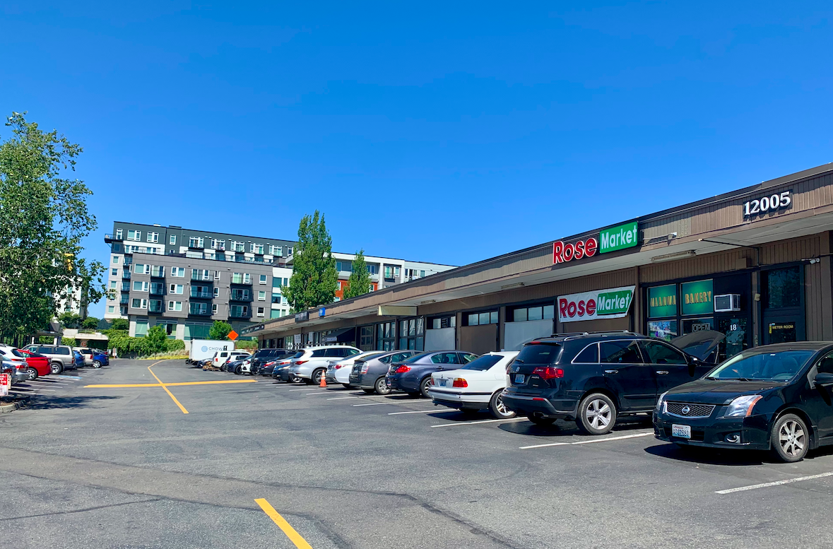 Located closer to the south is a strip mall, which used to include the now shuttered Rose Persian Market. The strip mall, however, is dominated by businesses like auto repair shops and trophy engravers. The layout of the strip mall is also grouped along a central parking lot, making it fairly uncomfortable to navigate as a pedestrian.