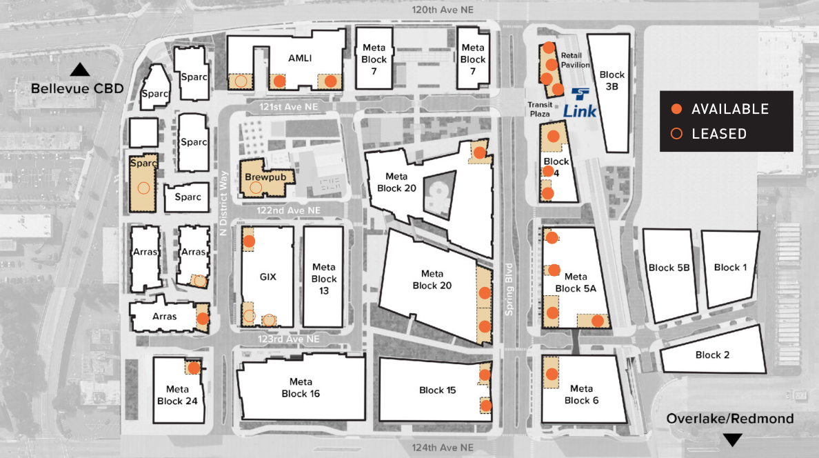 So now nearly a decade in, with most phases of construction finished and a light rail station nearing completion — even if the opening of the East Link extension has been delayed — where does the Spring District stand? Has it lived up to its promise of creating a dense, urban neighborhood in Bellevue — or has it departed from that original vision into something else entirely?