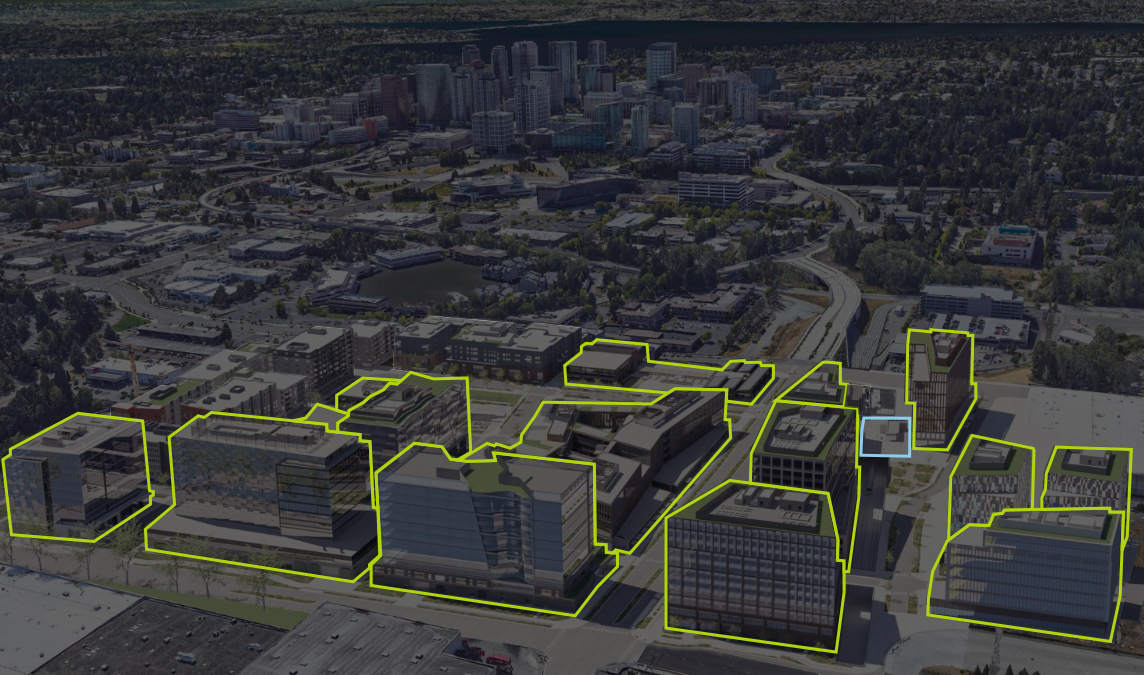 By 2028, the new neighborhood was supposed to offer homes to 3,000 residents and workspace to 18,000 office workers and 200-some retail and hospitality workers. In addition to high capacity transit, improved biking and walking infrastructure would make it safe and easy to travel in Downtown Bellevue without relying on a vehicle. Back in the beginning, planners were hopeful that a light rail station would one day be built adjacent to the site, although the alternative of bus rapid transit was also considered acceptable. Fortunately, in 2011 Sound Transit committed to building a Spring District Station as part of East Link light rail expansion.