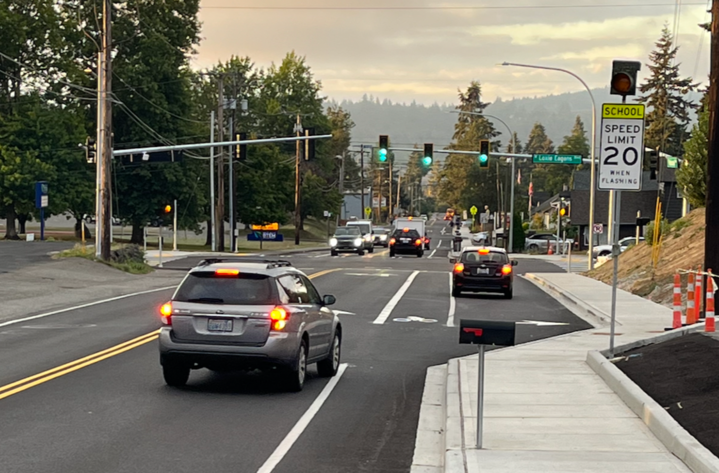 The $3 million West Hills Stem School – National Avenue Roadway Improvements project meant to improve student access and safety for school children, on a high-traffic intersection of Loxie Eagans Boulevard and National Avenue, near a SR 3 highway interchange in West Bremerton. The Kitsap County project failed because it widened the intersection, making crosswalks longer, and included no traffic calming.