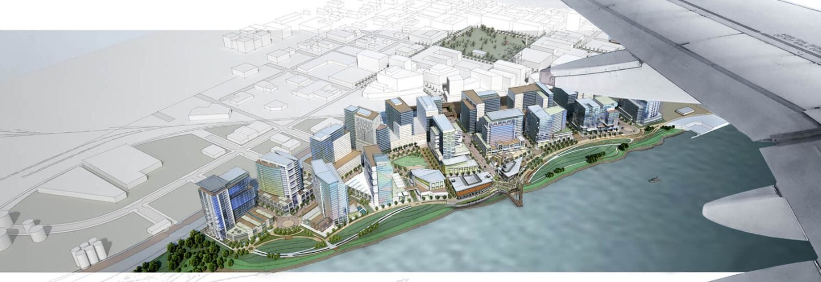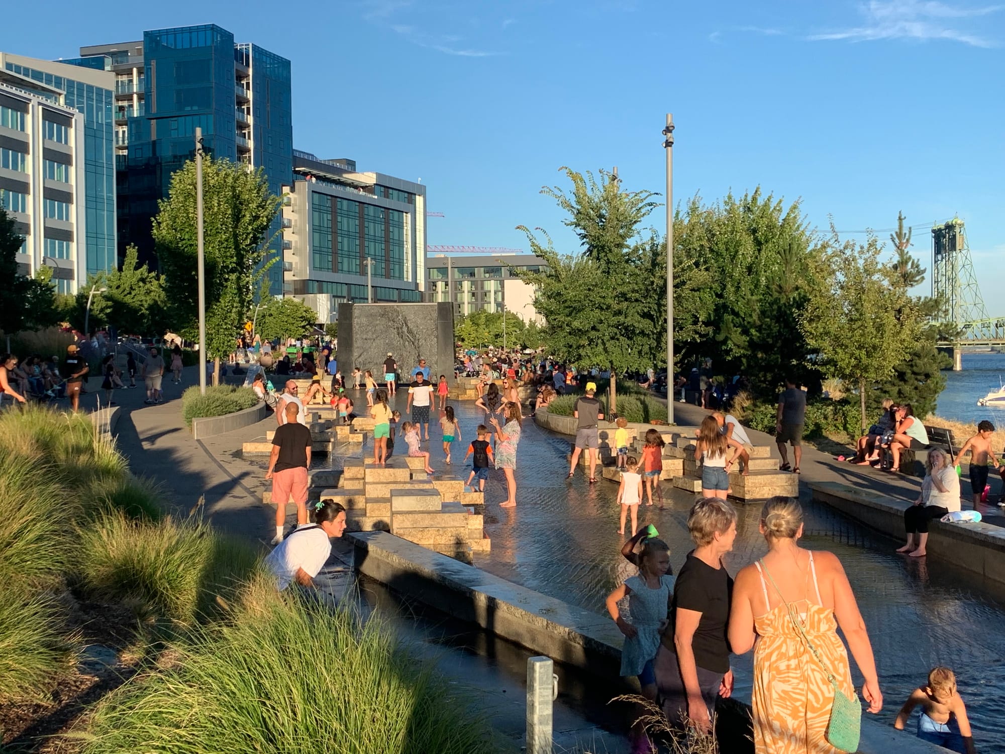 Gramor gifted the water feature to the city, along with the rest of the riverside park. The company also worked with the city to raise $48 million to rebuild a train trestle, a critical infrastructure investment for the future of the waterfront.