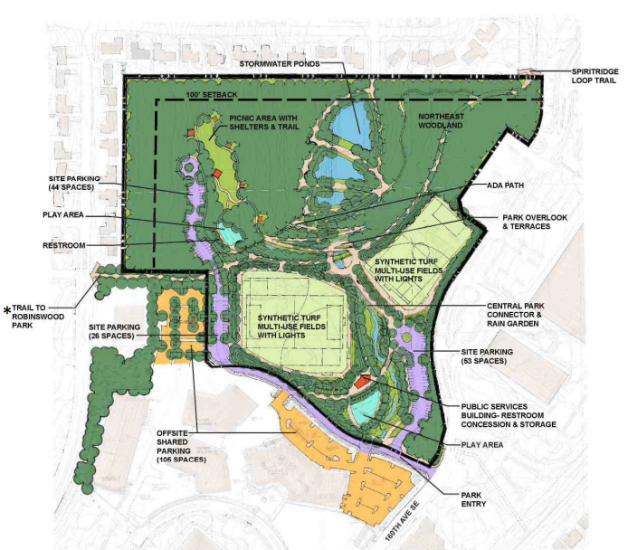 When those projects are complete, the only levy promises left are the Bellevue Airfield Park and Lake Sammamish Neighborhood Park. While no activity has begun for the Lake Sammamish Neighborhood Park that is being projected as a post 2025 commitment, the Bellevue Airfield Park has actually had its site analysis and initial schematic design done for a while now. Airfield park work is on-hold, as it is being considered as a site for a new Aquatics Center. Bellevue has been conducting an Aquatics Feasibility Study to explore alternatives for a new facility, the latest update found that the Airfield site would have the greatest environmental remediation cost. That’s the case because the site was a landfill from 1951 to 1964, and then an airfield until 1983.