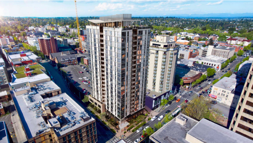Near the future Link light rail station at Brooklyn Avenue NE and NE 45th Street, and a new wave of highrise developments is in the works, some like the tower planned at 1200 NE 45th Street shown in the rendering below, will rise 24 stories in height, on par with UW Tower across the street.