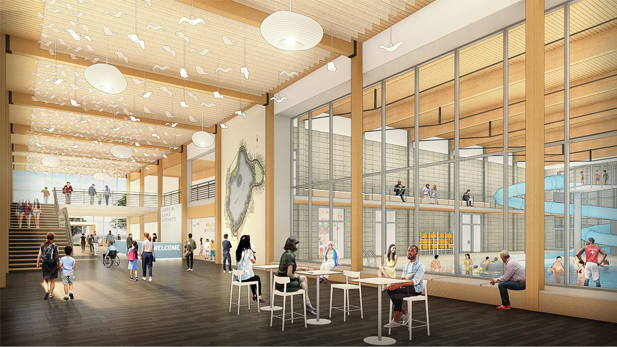 So far, these landscape design choices will improve the community center’s connection to the water, trail, and neighborhood commercial core. It also gives visitors more access to the water with the parking lot shifted closer to East Green Lake Dr N and away from the water. Green space within the park is lost, as the new community center will be bigger and other non-green spaces retain their square footage. In addition, the footprint of the parking lot is still significant and is evermore prominent in the latest design, which may present another point of concern.