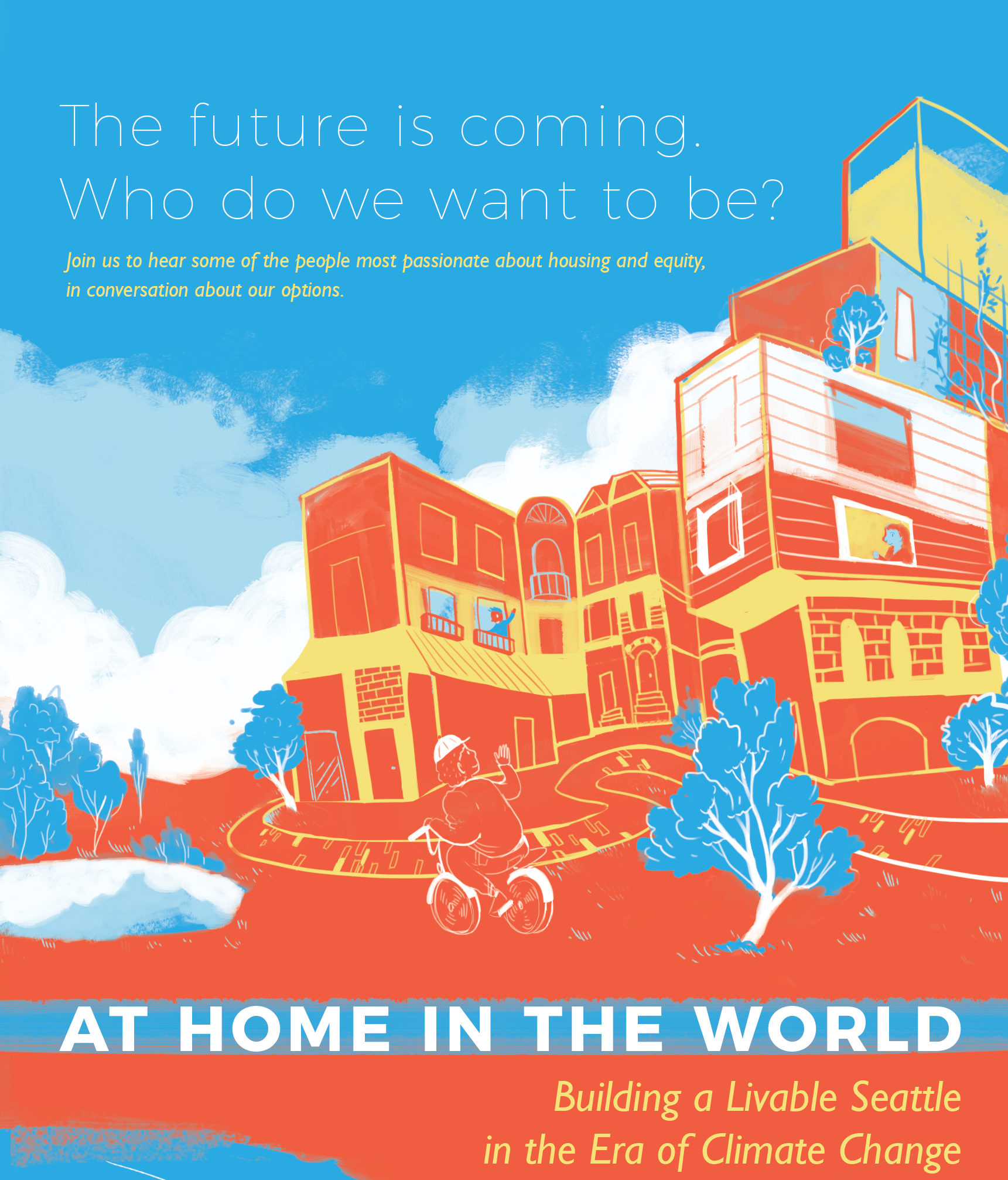 What kind of city do we want Seattle to be? The climate crisis and the housing crisis can spur us to create a sustainable, vibrant, and equitable city well adapted to a future dominated by climate change–or we can dig in our heels and preserve the existing look of our neighborhoods, while driving out low- and middle-income people and continuing to rely on private vehicles as our mode of transport. Can we build a resilient, beautiful city that’s welcoming to all? Join the conversation on October 27 at a housing forum, “At Home In The World,” organized by 350 Seattle with the support of Town Hall Seattle and the City Neighborhood Fund.