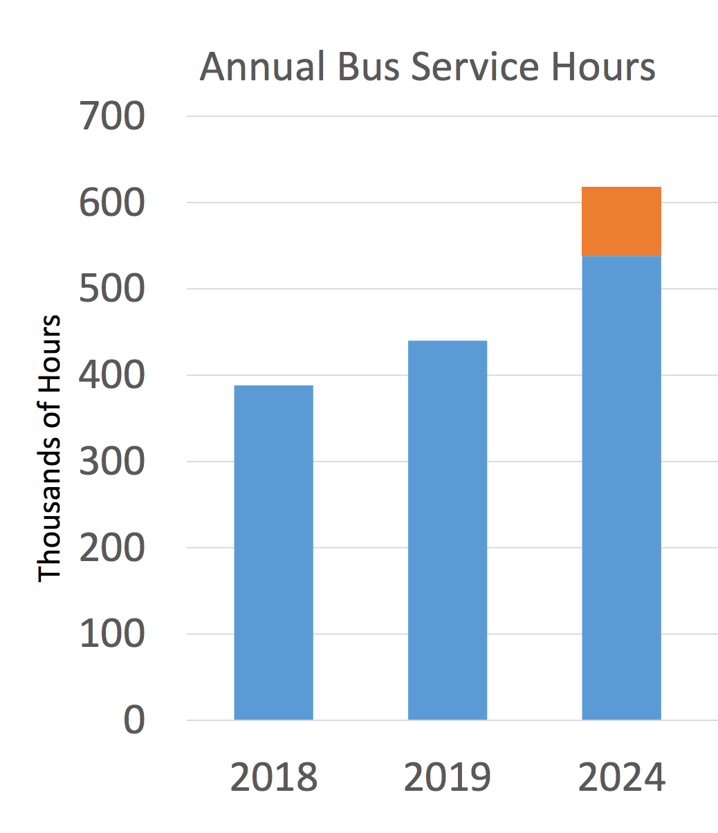In recent years, Community Transit has been increasing annual service hours with bouying tax revenues and a sales tax increase authorized in 2015. Once approved, the transit agency began a six-year process to grow annual service hours about 40%.